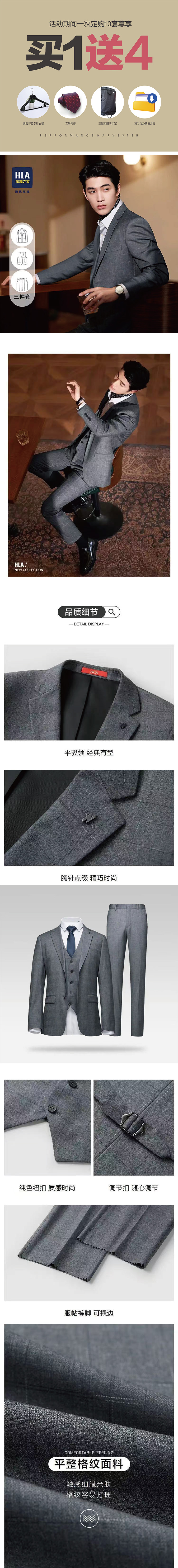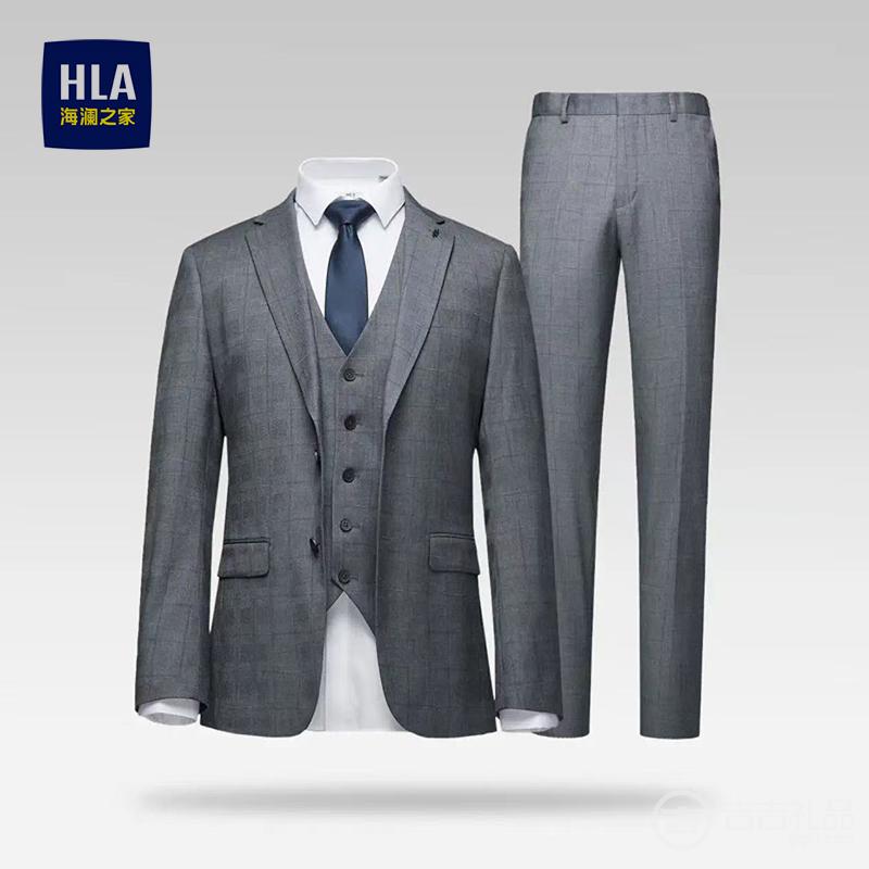 > 200元以上(全款.摸彩.介绍三单) > 灰格款 HLA海蓝之家结婚礼服 男士新郎西服+西裤+马甲3件套装 正品剪标 配送衣架+领带+防尘罩+方案(吊牌零售价1280元)165-190| 商品属性 | |