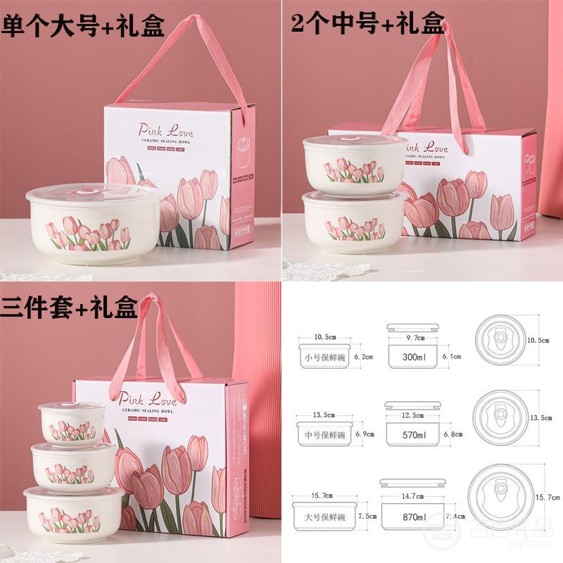 郁金香陶瓷保鲜碗 密封碗套装