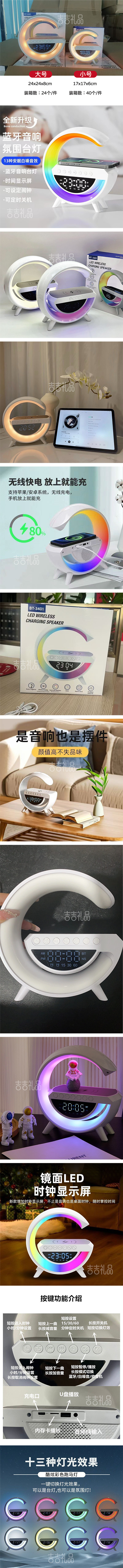 G型揽月无线充音响氛围神器 蓝牙音箱+无线充+氛围灯+时钟+闹钟 彩盒: