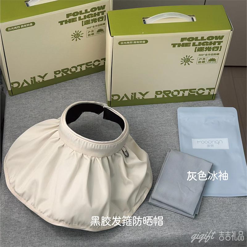 2件套(黑胶发箍防晒帽*1+灰色冰袖*1 ):13元(20个/件)