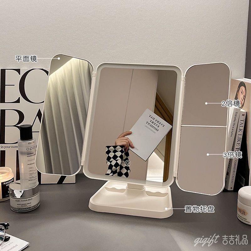 女生心动好物 台式三面可折叠化妆镜 带LED灯三色光可调梳妆镜(批发不含运费 30个/件)