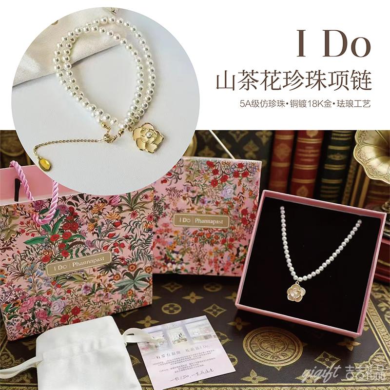 正品I Do山茶花珍珠项链 5A级仿珍珠 铜镀18K金 珐琅工艺 全套礼盒+手提袋
